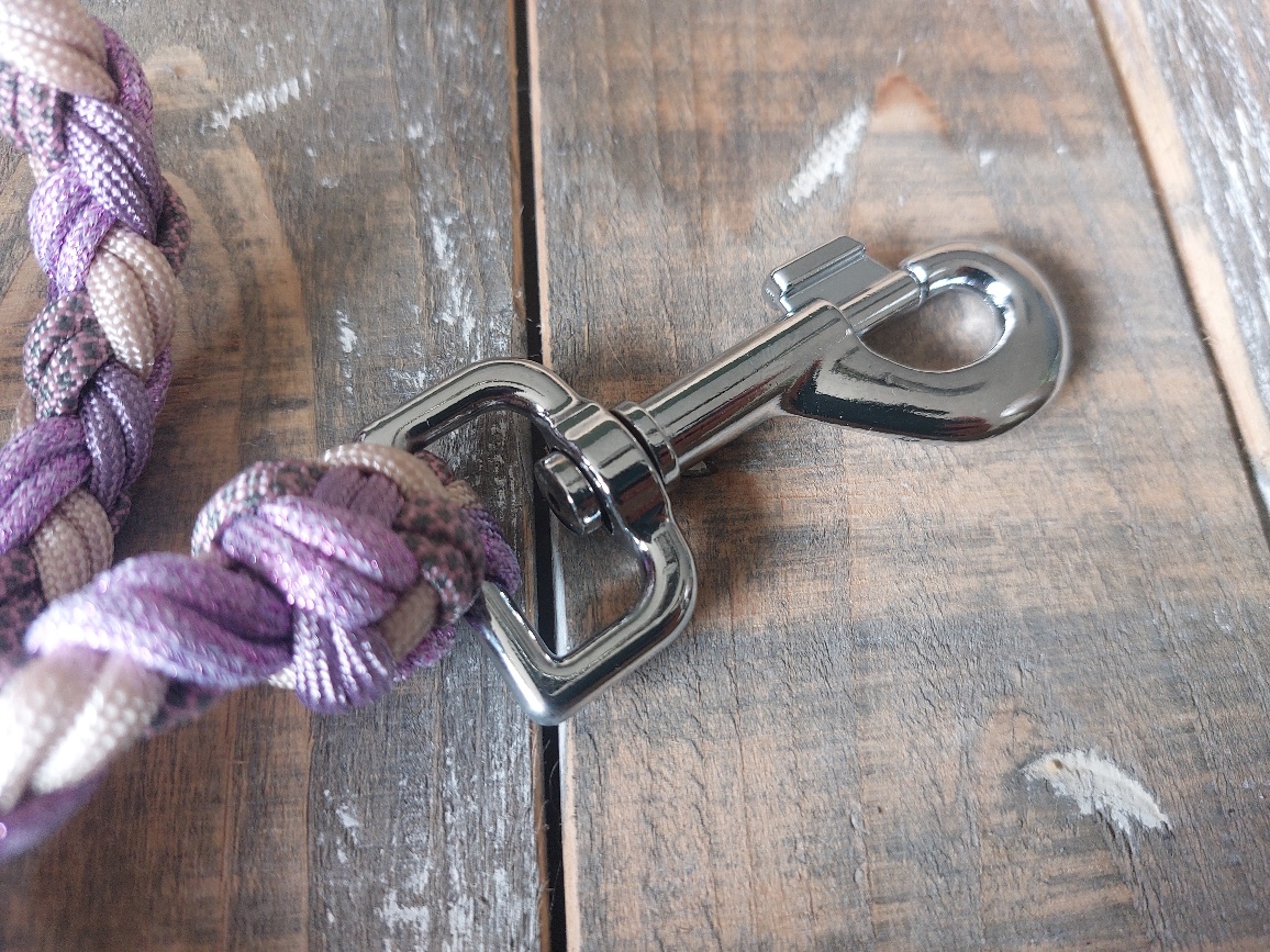Voorzien van een chrome plated snap hook, gevlochten met 4 strand double en afgewerkt met leuke zilverkleurige kralen.