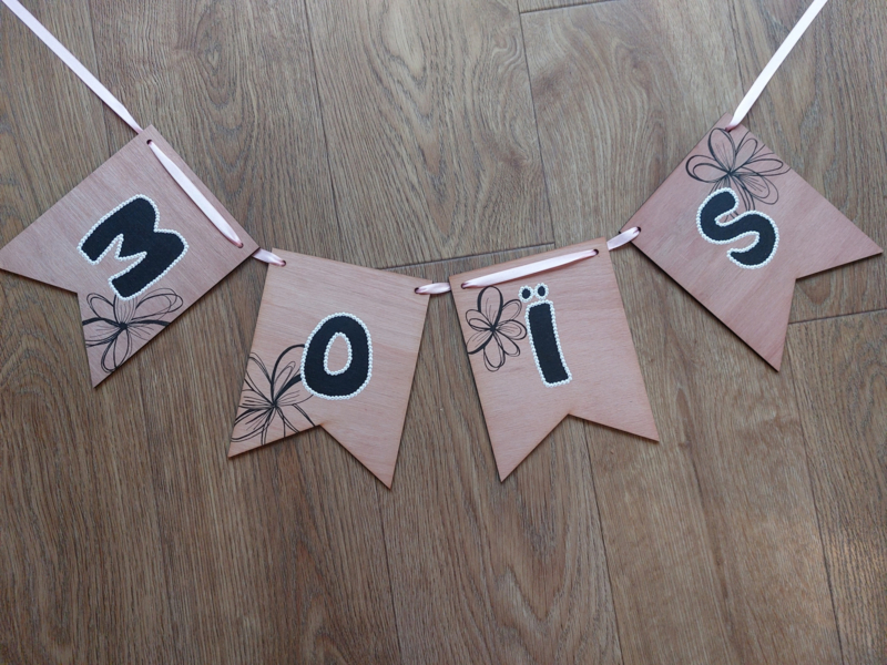 Houten vlaggenlijn met naam, MoïsHangt deze naamslinger straks bij jullie voor het raam?
